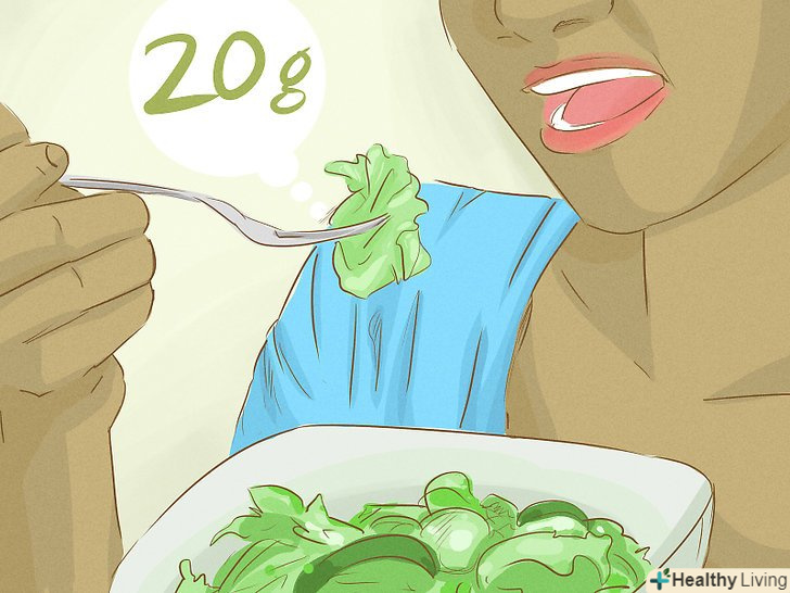 - Намагайтеся з'їдати щодня не менше 90-120 грамів зернових продуктів, а краще рекомендовану норму 180-220 грамів. Близько 30 грамів міститься в ½ склянки макаронів, рису або вівсяних пластівців, в одній скибочці хліба, в половині оладки або 1 склянці каші для сніданку.[5]