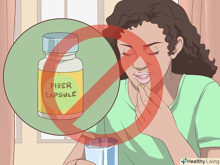 Припиніть споживання харчових добавок з клітковиною.існує широке розмаїття харчових добавок, які можуть збільшити загальне споживання клітковини. Але якщо клітковина шкодить вашому здоров'ю, вам слід припинити прийом таких добавок.- Перестаньте приймати препарати для розрідження стільця і проносні, що містять додану клітковину.