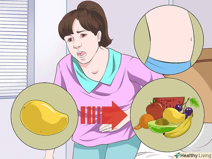 Зведіть до мінімуму кількість клітковини в їжі і закусках.клітковина міститься в ряді продуктів, серед яких – зернові, фрукти, овочі та бобові. Зниження кількості клітковини в їжі і закусках дозволить знизити загальне її споживання і, можливо, допоможе позбутися від симптомів розладу шлунково-кишкового тракту.[4]- Віддавайте перевагу фруктам з низьким вмістом клітковини або прибирайте волокнисті частини фруктів. Наприклад, їжте яблучне пюре, а не саме яблуко, так як в шкірці міститься велика кількість клітковини, або щодня випивайте по 200 мл соку. До фруктів з низьким вмістом клітковини відносяться: консервовані фрукти, варені фрукти і фрукти без шкірки або шкірки.