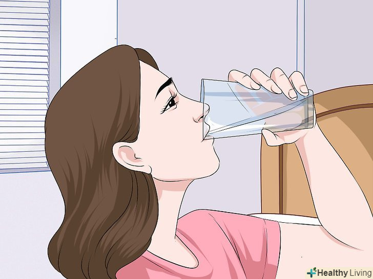 Пийте багато води.збільшуючи споживання клітковини, дуже важливо не забувати випивати достатню кількість води. Клітковина здатна поглинати воду, тому вам доведеться пити побільше води, щоб покрити це всмоктування рідини.[11] збільшивши споживання клітковини, вам доведеться збільшити і споживання води.- Щоб розрахувати кількість рідини, що вам доведеться випивати щодня, необхідно розділити свою вагу на 30. Якщо ви важите 90 кг, значить вам необхідно щодня випивати по 3 літри води.[12] це допоможе роботі вашої травної системи і запобіжить запор.