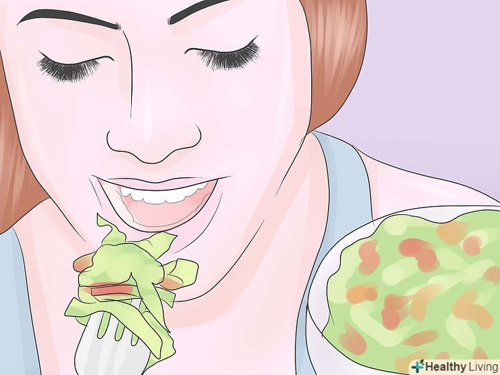 Їжте фрукти та овочі.їжте ці продукти в необмеженій кількості, стільки, скільки хочете! Хоч весь день! Ви додасте смаку в свій раціон загасивши овочі. Наберіть каструлю декількома склянками води, покладіть туди шматки нарізаної курки або яловичини, киньте моркву, селеру, брокколі, картоплю, цвітну капусту, півсклянки томатної пасти, 4 зубчики продавленого часнику, нарізану цибулю, спеції на смак і поставте все це гаситися на 2 години! Ось це чистий обід. Не переживайте щодо калорій в даному блюді, просто покладіть на тарілку їжі з розміром в долоню.