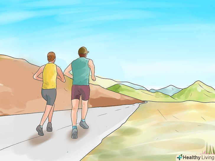 Тренуйтеся разом з другом.знайдіть людину, яка так само, як і ви хоче змінити свій спосіб життя. Завдяки цьому ваші заняття спортом будуть більш захоплюючими. Крім того, вам буде легше дотримуватися наміченої мети.[20]- Запишіться в фітнес-клуб, скористайтеся послугами персонального тренера або просто займіться ходьбою разом з другом. вартість персонального заняття з тренером залежить від кількості осіб, які беруть участь в тренуванні.