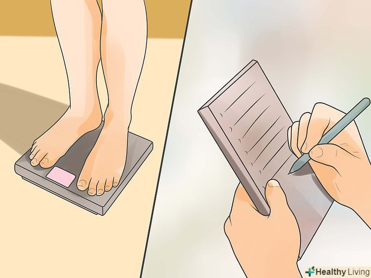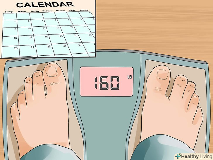 Відстежуйте свої успіхи.якщо ви будете звертати увагу на те, чого вам вдалося досягти за тиждень або місяць, вам легше буде залишатися мотивованим на шляху до успіху.- Зважуйтеся раз на тиждень або раз на два тижні. Згідно з дослідженнями, регулярні зважування сприяють великим успіхам. Регулярні зважування допомагають старанніше дотримуватися режиму схуднення, так як ваги нагадують людині про те, до якої він прагне мети.[23]