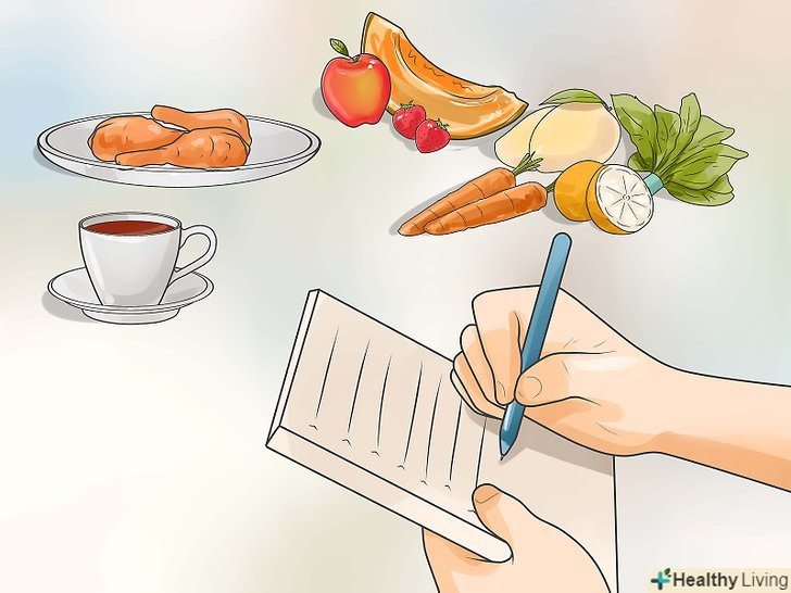 Ведіть щоденник харчування.згідно з дослідженнями, ведення щоденника харчування - це запорука успішного схуднення.[2] щоденник харчування допомагає відстежити кількість споживаних калорій.- Почніть вести щоденник харчування, перш ніж вносити зміни в свій раціон. Завдяки цьому ви зможете побачити, що вам необхідно змінити в своєму раціоні. У щоденнику харчування згадуйте про те, що вам необхідно припинити робити, які зміни слід внести, а також описуйте проблемні моменти, пов'язані з вашим раціоном харчування.