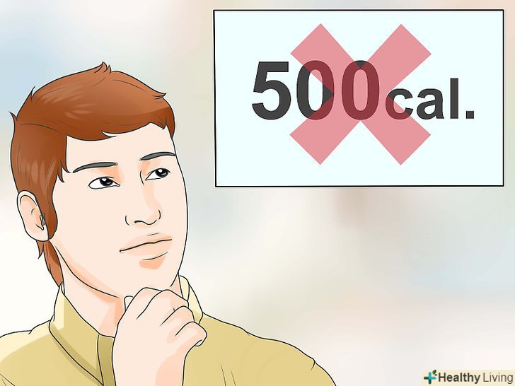 Скоротіть свій денний раціон на 500 калорій.якщо ви хочете схуднути, вам доведеться менше їсти. Якщо скоротити споживання калорій, це допоможе контролювати кількість їжі, що з'їдається. В результаті ви зможете позбутися від зайвої ваги.- Щоб схуднути на 0,5-1 кілограм на тиждень, лікарі-дієтологи рекомендують скоротити свій щоденний раціон на 500 калорій.[3]