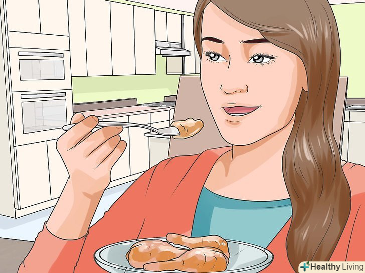 Включайте в свій раціон білкові продукти.якщо ви хочете схуднути і з цією метою скорочуєте кількість споживаних калорій, переконайтеся в тому, що ви включаєте в свій раціон достатню кількість білка. Білок є важливим поживним речовиною, що сприяє втраті ваги.- Зменшуючи кількість споживаних калорій і збільшуючи фізичну активність, швидше за все, ви будете відчувати голод протягом дня. Однак якщо ви будете включати в свій раціон достатню кількість білка, ви зможете уникнути неприємного почуття голоду.[5]