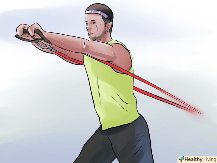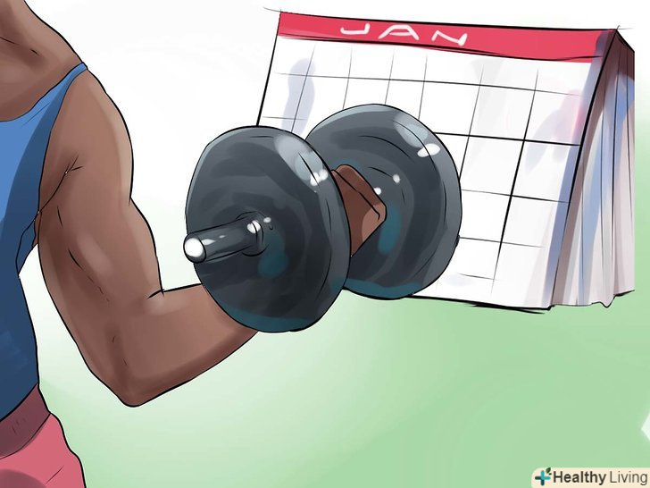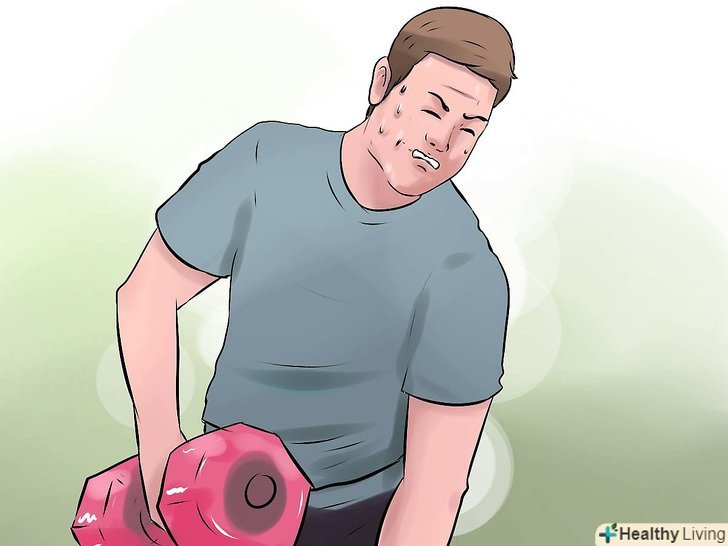 Займайтеся на силових тренажерах або зі штангою і гантелями 2-3 рази в тиждень.чоловікам слід підібрати таку вагу, при підйомі якого м'язи почнуть втомлюватися за 5 повторів. Робіть 3 підходи. Після силового тренування ви повинні відчути м'язову втому. Дайте своїм м'язам відпочити протягом 24-48 годин.- Жінкам або людям з поганим здоров'ям слід віддавати перевагу тренуванням на витривалість. Наприклад, можна вибрати трохи меншу вагу гантелей і виконати 3 підходи по 10-15 повторів.