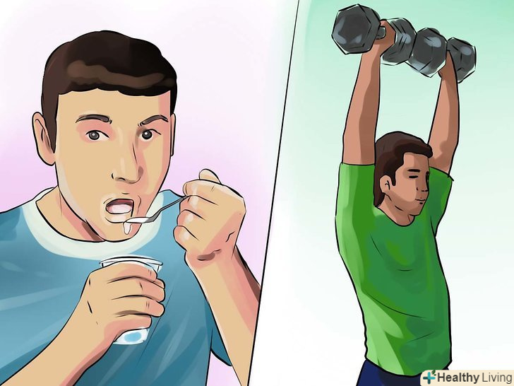 Їжте після тренування.білок молочної сироватки, йогурт з високим вмістом білків і трохи овочів допоможуть вам наростити м'язову масу. Збільшення м'язової маси в свою чергу допоможе спалити жир і підвищити рівень тестостерону.