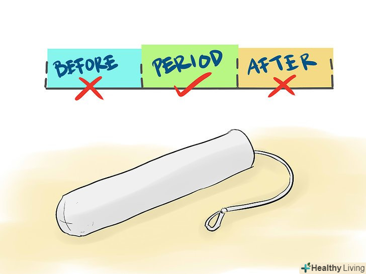 Використовуйте ваш перший тампон в той день, коли виділення стають постійними, а не на самому початку або в кінці місячних.коли ви звикнете до тампонам, то зможете використовувати їх в перший і останній день менструації, але ви ніколи не повинні використовувати їх «до» або «після» місячних.