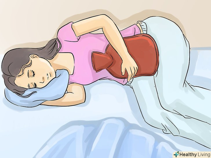 - Купіть спеціальну грілку для живота. Іноді у продажу можна знайти спеціальні грілки, які приклеюються до живота. З ними можна ходити на навчання або роботу і носити їх під одягом аж до восьми годин.[14]