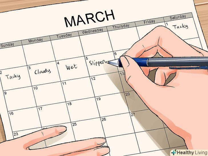 Кожен день записуйте свої симптоми.вони дозволять вам зрозуміти, коли настане овуляція.[22]- Щодня стежте за виділеннями і записуйте інформацію (вище про це написано докладніше). Також фіксуйте всі інші симптоми, пов'язані з циклом: біль у грудях, спазми, перепади настрою і так далі.[23]