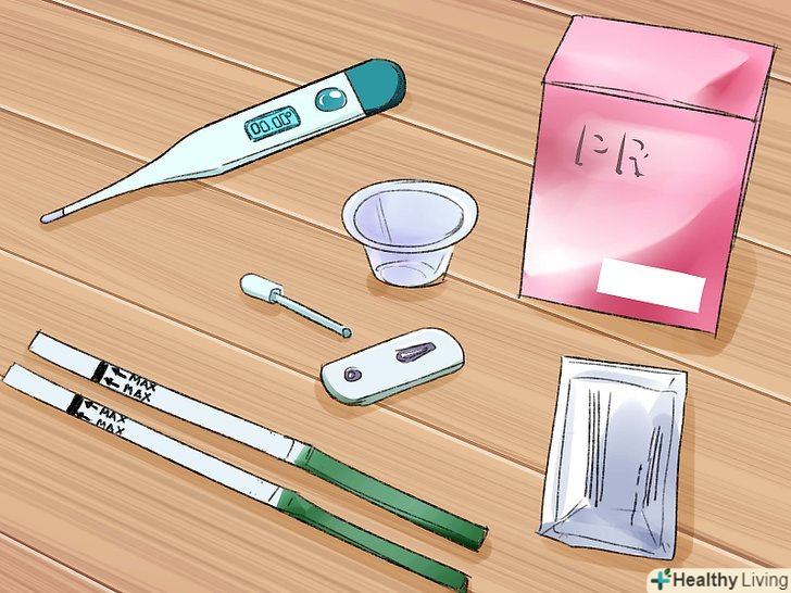 Використовуйте спеціальні набори для визначення періоду овуляції.такі набори можна купити практично в будь-якій аптеці. Вони являють собою аналіз сечі, при якому вимірюється кількість лютеїнізуючого гормону. Зазвичай рівень цього гормону в сечі невисокий, але він починає різко рости за 24-48 годин до настання овуляції.[17]- Такі набори допоможуть вам більш точно визначити час настання овуляції в порівнянні з вимірюванням базальної температурою і оглядом слизу, особливо якщо у вас нерегулярний цикл.