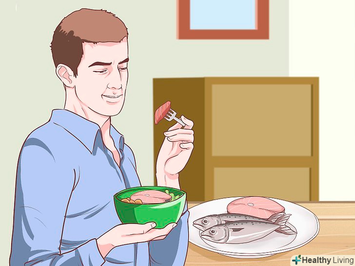 Будьте більш вибірковими у споживанні білка. зменшіть кількість споживаного червоного м'яса, включаючи яловичину, свинину, баранину і козлятину. Також добре було б обмежити споживання таких м'ясовмісних продуктів, як сендвічі з м'ясом і хот-доги. [5]- Замініть червоне м'ясо рибою з високим вмістом жирів омега-3, в тому числі лососем і тунцем. Ці продукти корисні для простати, а також серця та імунної системи. Дослідження про взаємозв'язок між дієтичним споживанням риби і профілактикою раку передміхурової залози в значній мірі засновані на кореляційних даних, а саме той факт, що серед японців зустрічається дуже мало випадків раку передміхурової залози, і при цьому вони споживають велику кількість риби. Наявність причинно-наслідкового зв'язку все ще знаходиться на стадії обговорення. [6]