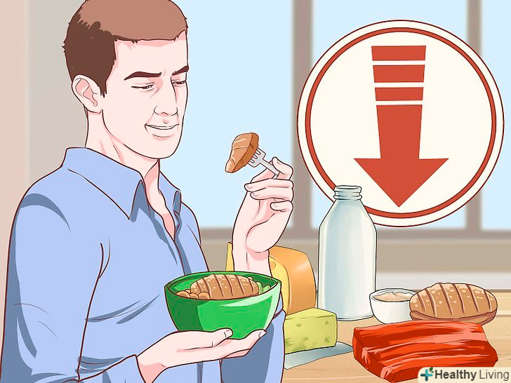 Скоротіть вживання солі. кращим способом зменшення споживаної кількості натрію – є включення в раціон свіжих продуктів, м'яса, молочних продуктів, і відмова від запакованих, консервованих і заморожених продуктів. Сіль часто використовується як консервант і, таким чином, присутня у великих кількостях в попередньо упакованих харчових продуктах. [12]- При здійсненні покупок якомога більше дотримуйтеся зовнішнього периметра продуктового магазину. У більшості випадків там зосереджені свіжі продукти, в той час як коробки, банки та інші упаковки знаходяться в центральних проходах.