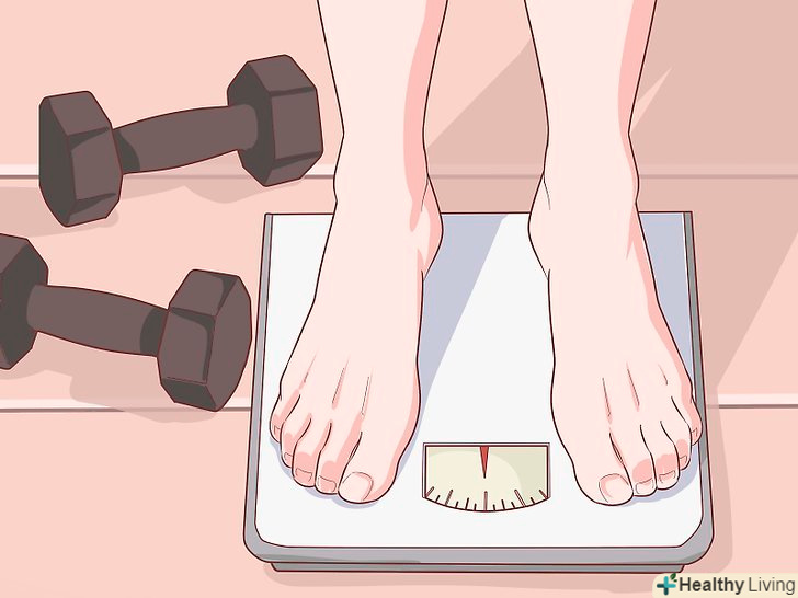 Підтримуйте нормальну вагу. якщо у вас надмірна вага, посидьте на дієті і виконуйте план фізичних вправ, який допоможе вам повернутися в нормальні рамки. Надмірна вага і ожиріння визначається за допомогою індексу маси тіла (ІМТ), показника жирності тіла. ІМТ визначається як вага людини в кілограмах (кг), поділений на квадратне значення зростання людини в метрах (м). ІМТ 25-29, 9 вважається надмірною вагою, в той час як індекс маси тіла більше 30 вважається ожирінням. [20]- Зменшіть кількість калорій, яку ви споживаєте, і збільште фізичне навантаження. Це секрет втрати ваги. [21]