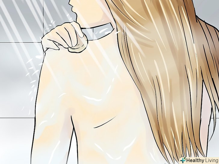 Прийміть теплий душ.- Направте бризки так, щоб почати у верхній частині грудей і підставляйте тіло, щоб вода стікала вниз. Одночасно ви можете масажувати груди. Спочатку це буде трохи боляче, але так ви зможете зменшити чутливість і затвердіння в грудях.