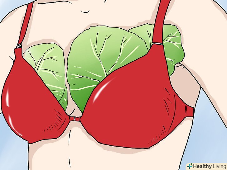 Охолодіть капустяне листя і покладіть їх всередину бюстгальтера.- Це засіб, яке відомо з давніх часів. Охолодіть чисті листя капусти протягом 30 хвилин. Виконайте дірку в центрі листа для соска. Покладіть їх на і навколо грудей і одягніть бюстгальтер. Робіть це протягом 20-30 хвилин 3 рази на день до тих пір, поки нагрубание не зменшиться.
