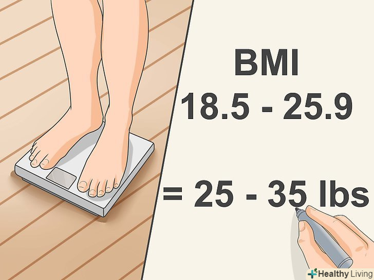 Схудніть або наберіть вагу, якщо це необхідно.напевно ви чули, що нездорова вага може негативно впливати на регулярність менструального циклу і здатність до зачаття. Іншими словами, якщо у вас зайва вага, то вам необхідно схуднути, і, навпаки, набрати кілька кілограмів, якщо ваша вага занадто низький. Націліться на індекс маси тіла (ІМТ) від 20 до 27.[11]- Якщо ви не знаєте свійІМТ, скористайтеся онлайн-калькулятором (Наприклад, цим) - вам знадобиться вказати свій зріст, вагу і вік.[12]