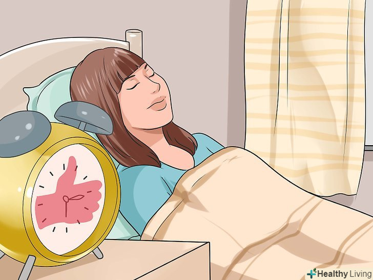 - Постарайтеся лягати спати і прокидатися в один і той же час, навіть у вихідні. Організму знадобиться деякий час, щоб звикнути до нового режиму, і тоді ваш сон стане більш регулярним. Ставте будильник на один і той же час і не користуйтеся кнопкою повтору будильника, інакше ваш сон буде переривчастим і ви будете відчувати втому протягом усього дня.[18]