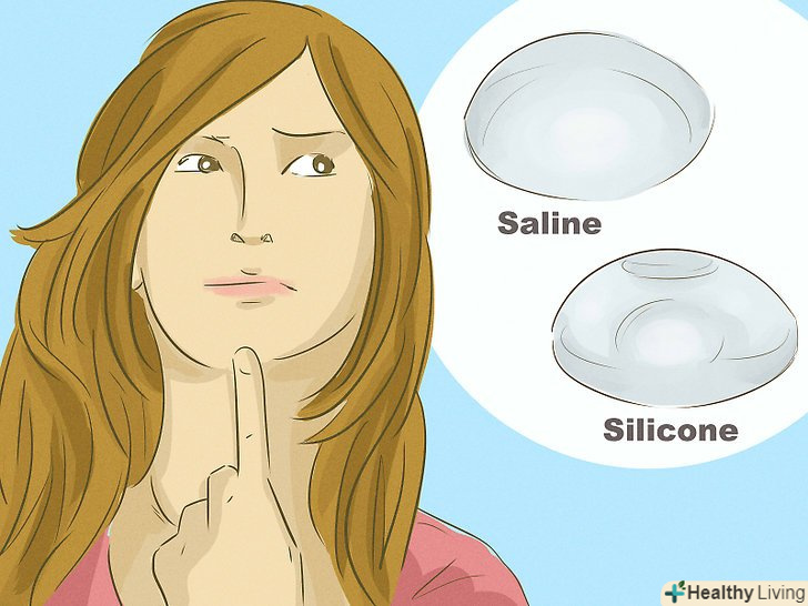 Усвідомте ризики операції.будь-яка медична процедура несе певний ризик. Крім загальних проблем, які в будь-який момент можуть виникнути у вас під наркозом, необхідно розуміти потенційні ризики, пов'язані з самими імплантами.[9]- Наприклад, задайте лікаря питання, що станеться, якщо імплант лопне. Також важливо запитати про ризик розвитку інфекції і про побічний ефект у вигляді утворення рубцевих тканин. Крім того, необхідно врахувати, чи збираєтеся ви (і чи не захочете спробувати) в будь-який момент в майбутньому забезпечити своїй дитині грудне вигодовування. У деяких випадках грудне вигодовування просто неможливо після операції, тому дуже важливо обговорити це питання з лікарем.