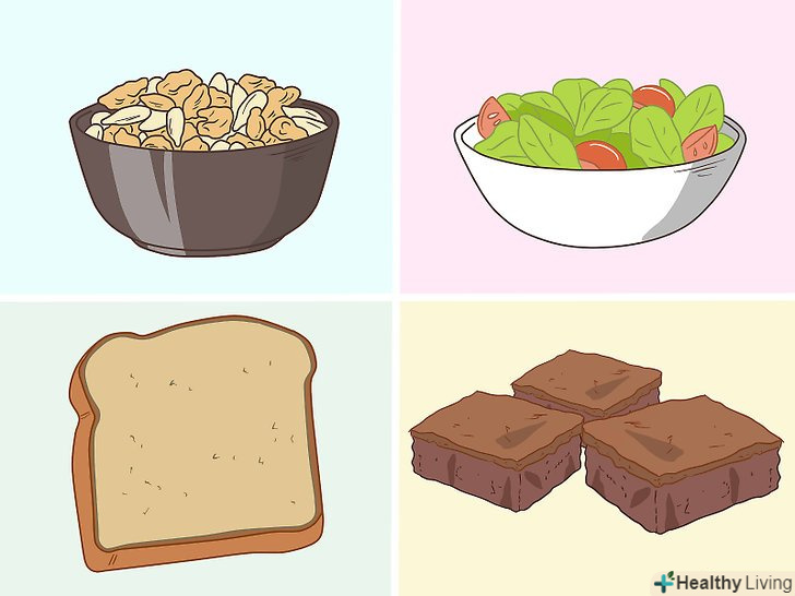 Щоб допомогти дочці відчути себе краще, складіть меню на свято, орієнтуючись на її потреби.є безліч продуктів, які можуть допомогти вашій дочці впоратися з деякими неприємними симптомами, які часто супроводжують менструацію. Горіхи, листові овочі, продукти з високим вмістом заліза і калію відмінно підійдуть для підтримки здоров'я і гарного настрою протягом усього менструального циклу.[10]- Поставте на стіл кілька тарілок з очищеними соняшниковим насінням і горіхами. Полийте їх медом, щоб вийшло солодке частування. Можна приготувати салат зі шпинату (багато різних докладних рецептів можна знайти тут), а також спекти на десерт банановий хліб.[11]