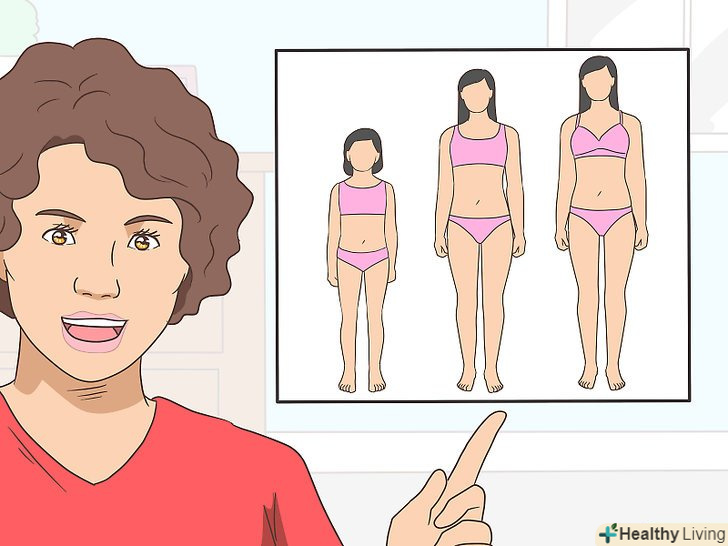 Розтягніть бесіду про статеву зрілість на кілька років.почніть обговорювати з донькою будь-які питання щодо її тіла і організму, як тільки ці питання будуть з'являтися. Швидше за все, вони з'являться незабаром після того, як вона буде готова говорити на такі теми. У процесі дорослішання дочки важливо обговорювати з нею ряд важливих питань, адаптуючи розмову до віку дитини. Краще розтягнути цю бесіду на кілька років, а не обговорювати тему дорослішання і статевої зрілості раптово в один день.[14]- З дитиною ще в зовсім ранньому віці потрібно говорити про різні частини його тіла і про те, для чого вони потрібні. Згодом, коли дитина буде рости, можна розповідати про організм більш детально. Переконайтеся в тому, що дочка розуміє, про що ви їй розповідаєте.