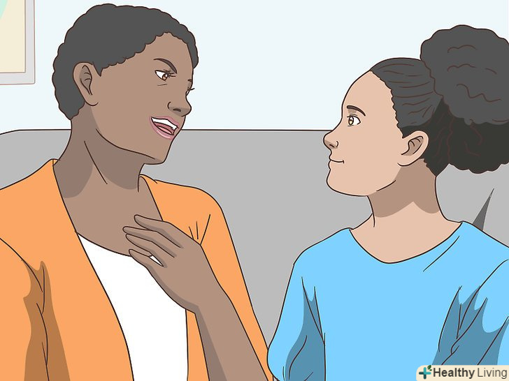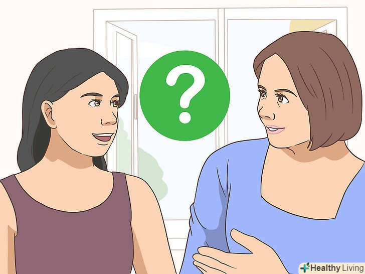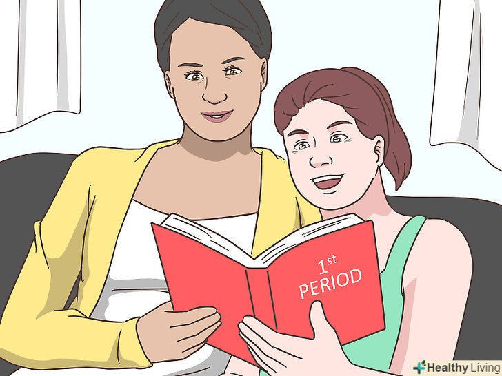Підтримайте дочку власними історіями з життєвого досвіду.можливо, ваша дочка хоче почути про те, як проходив перший менструальний цикл особисто у вас — це може розвеселити і розсмішити її, і вона відчує себе більш комфортно. Але є ймовірність, що вона вважатиме цю історію дивною, тому краще відразу дізнатися, що вона хоче від вас почути.[20]- Не у всіх батьків є можливість обговорити з дитиною менструацію-це цілком нормально. Але вашій дочці потрібно поговорити з людиною, яка стикався з цією ситуацією. Наприклад, якщо ви батько дівчинки, спробуйте знайти людину, з яким вона могла б обговорити це питання: це може бути подруга, хтось із родичів або лікар. Таким чином, ви надасте дитині необхідну підтримку, адже ваша дочка буде знати, що ви допомогли їй.