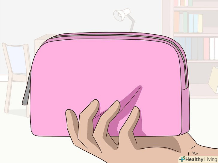 Зберіть для неї набір, який вона могла б взяти з собою в школу.крім невеликого подарунка вашої дочки, можливо, захотілося б мати при собі гігієнічний набір, в якому будуть всі необхідні засоби гігієни, який вона могла б брати з собою в школу або кудись ще. Цей набір повинен бути невеликим, щоб його можна було легко покласти в рюкзак або сумку (наприклад, можна купити пенал або спеціальний кейс (футляр), але він повинен бути досить містким для прокладок та інших засобів гігієни).[2]- Ні в якому разі не підписуйте цей набір (наприклад, «набір для менструації» або що-небудь в цьому роді)! Не купуйте яскраво-червоний пенал для цього набору! Можливо, вам це здасться забавним і смішним, але навряд чи ваша дочка оцінить такий жарт.