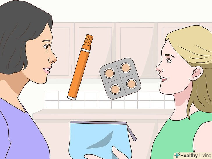 Покладіть в набір ті предмети, які, на вашу думку, їй знадобляться.як тільки ви вручите доньці подарунок, запитайте, що вона думає про це. Можливо, вона хотіла б, щоб в наборі були якісь ще приналежності, які могли б їй стати в нагоді в школі. Сходіть з донькою в аптеку або супермаркет, щоб разом вибрати відсутні приналежності для її набору.[6]