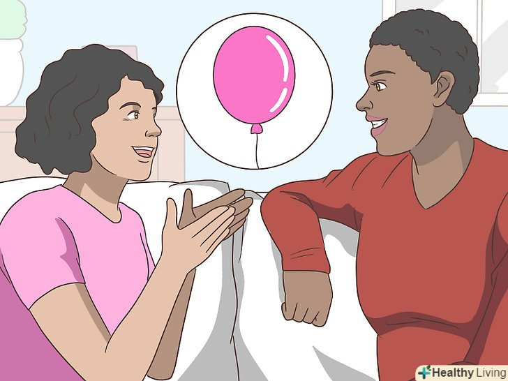 Незважаючи на те, що в Росії і країнах СНД не прийнято святкувати першу менструацію, це може бути відмінним способом підтримати дитину в цей період і підняти йому настрій.запитайте доньку, чи хоче вона відсвяткувати цю подію (і як саме). Якщо ваша дочка проти такої затії-просто пропустіть цей крок. Перед тим, як почати планувати і організовувати цю подію, запитайте дозволу у дочки і запропонуйте їй кілька варіантів, щоб вона сама могла вибрати той, який їй більше підходить. Пам'ятайте, що суть цього заходу в тому, щоб дочка глянула на факт початку менструального періоду з позитивного боку. Тому найкраще разом запланувати і організувати цю вечірку.[7]- Не турбуйтеся, якщо раптом виявиться, що ідеї вашої дочки з приводу вечірки сильно відрізняються від ваших власних. Адже це її вечірка, і вона має право самостійно контролювати її організацію.