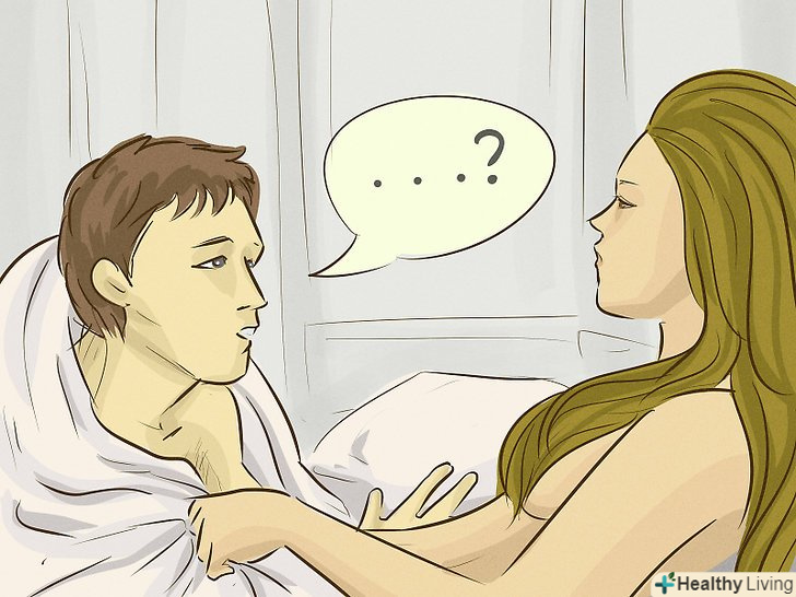 Обов'язково знайдіть час поговорити з партнером до і після сексу .До початку нових сексуальних відносин дуже важливо знайти час поговорити з партнером, перш ніж стрибати в ліжко. Будьте чесні, розповідаючи про своє минуле сексуальному досвіді і про бажання практикувати безпечний секс. Якщо ваш партнер не хоче безпечного сексу або не бажає ділитися з вами історією минулих відносин, з Вашого боку буде нерозумно вступати з ним в статеві відносини.[16]- Звичайно, немає гострої необхідності перераховувати всіх колишніх партнерів, але ви повинні отримати уявлення про те, наскільки регулярними і ризикованими були такі відносини у вашого партнера. Найкраще буде перевіритися у лікаря, перш ніж переводити свої відносини на інший рівень.
