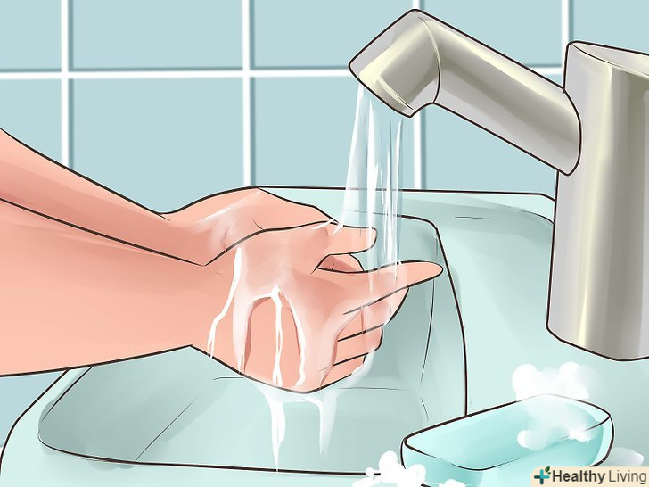 Помийте руки.оскільки вам доведеться торкатися до геніталій, потрібно спочатку помити руки. На руках багато бактерій, особливо якщо ви торкаєтеся до предметів в місцях, де багато людей (як в аеропорту). Ці бактерії можуть викликати розвиток інфекцій.- Якщо у вас є з собою антисептик для рук, скористайтеся ним.