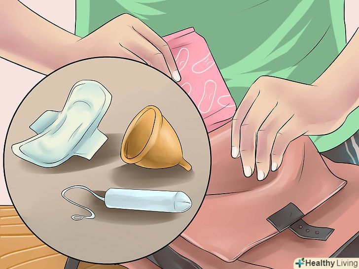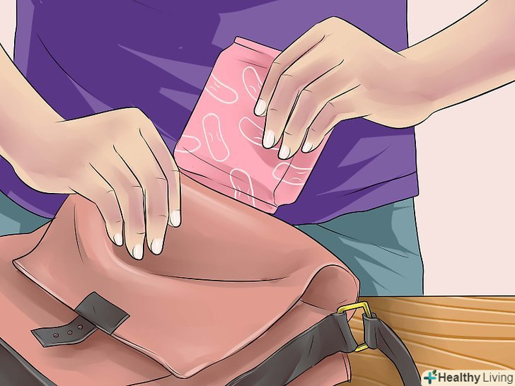 Візьміть з собою велику кількість різних засобів.складіть з собою ті кошти, які вам підходять. Якщо зазвичай Ви користуєтеся тампонами або менструальної чашею, захопіть з собою також кілька прокладок на кожен день (вони тонше звичайних прокладок). Це дозволить вам захистити себе від можливих плям. Якщо ви використовуєте менструальну чашу, візьміть з собою запасну чашу або кілька тампонів або прокладок.- Вам також слід взяти з собою невеликий антисептик для рук. Швидше за все, на борту буде вода і мило, але краще перестрахуватися на той випадок, якщо вони закінчаться.
