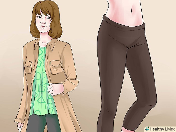Одягніть зручний одяг.тривалий переліт завжди заподіює дискомфорт, навіть якщо менструації немає. Одягніть те, в чому вам буде зручно, не вдаряючись в крайності. Підійдуть спортивні штани, штани для занять йогою чорного кольору-вони приховають плями, якщо кров просочиться на одяг.- Одягайтеся багатошарово. Складно вгадати, жарко або холодно буде на борту, проте найчастіше в літаку буває холодно. Одягніть зручну майку на той випадок, якщо стане жарко, і візьміть з собою теплу кофту або легку куртку, яку ви могли б накинути, якщо замерзнете.