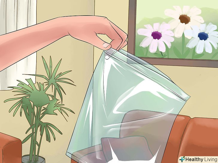 - Якщо у вас немає великого пластикового пакета, згорніть штани так, щоб плями виявилися всередині, і покладіть на дно сумки. Заперіть і висушіть штани, коли у вас буде можливість.