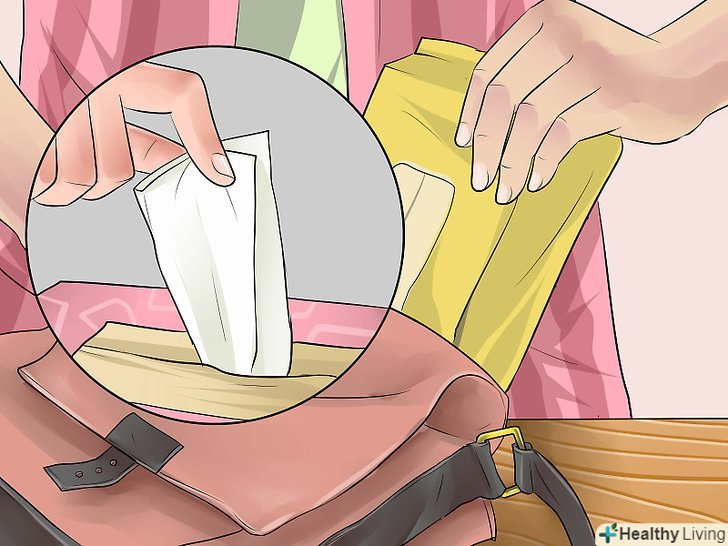 - Візьміть з собою запасну білизну. Якщо кров забруднить білизну, переодягніться і виперіть брудну білизну в раковині. Покладіть білизну в пакет, щоб воно не намочило речі.