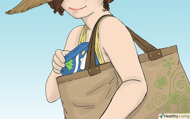 Упакуйте запасні гігієнічні засоби, щоб взяти з собою.якщо ви носите тампони, вам може знадобитися змінити їх кілька разів протягом дня. Прихопіть їх із запасом на випадок, якщо ваша компанія вирішить продовжити насолоджуватися днем і залишиться там довше. Якщо хочете поміняти тампон на прокладку, то зробіть це після того як закінчите плавати і переодягнетеся. Отже, прихопіть з собою і прокладку.- Якщо ви носите тампони в день рясних виділень, міняйте їх кожні 3-4 години.