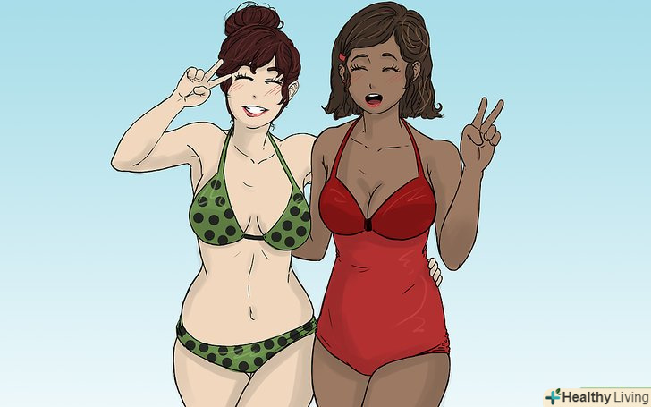 Можете просто позасмагати.якщо плавання занадто дискомфортно, або ви не впевнені в тому, що це слід робити, милосердно відступите. Скажіть: "я зараз не хочу плавати!". І замість цього насолоджуйтеся сонячними ваннами. Якщо вся ваша компанія складається з дівчат, вони, ймовірно, все відразу зрозуміють. Якщо ж ви будете в змішаній компанії, хлопці, швидше за все, будуть занадто соромитися, щоб тиснути на вас з цього приводу.- Знайдіть спосіб взаємодії з компанією, навіть якщо всі вони у воді. Ви можете сидіти на краї басейну з опущеними в воду ногами, можете бути суддею змагань в плаванні на час або просто підбадьорювати Змагаються з боку.