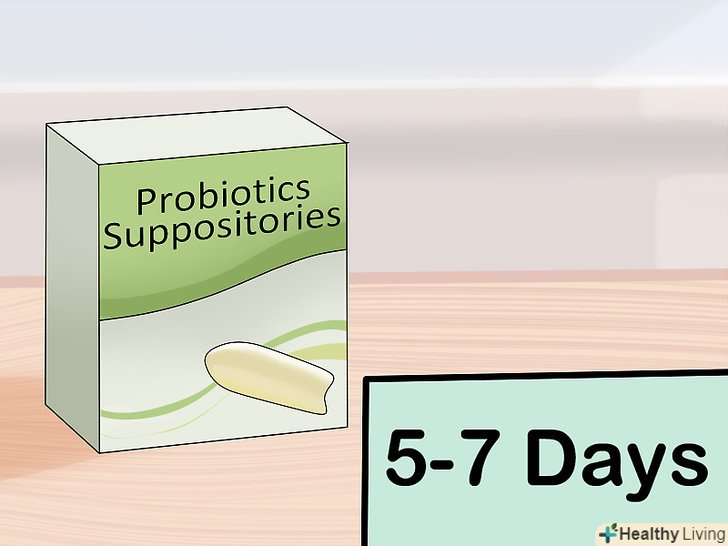 Їжте більше йогуртів або використовуйте супозиторії з пробіотиками.Пробіотики допомагають підтримувати бактеріальний баланс піхви і запобігають росту небезпечних бактерій. Ви можете з'їдати по 1 склянці (240 мл) йогурту, збагаченого біфідобактеріями, або вводити в піхву супозиторій з пробіотиками — це допоможе в боротьбі з грибковою інфекцією.[8]- Пробіотики містяться в натуральних йогуртах, кефірі, ряжанці та інших кисломолочних продуктах. Такі продукти можна купити в магазині, але обов'язково уважно вивчіть склад на етикетці і переконайтеся, що в обраному продукті містяться живі біфідо - і лактобактерії. Ви також можете приготувати такі продукти самостійно, користуючись заквасками.[9]