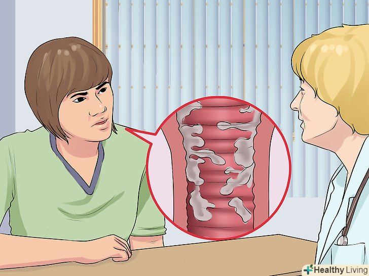 Здайте необхідні аналізи, які призначить лікар.на прийомі лікар задасть питання, що стосуються історії хвороби, наприклад, як довго ви відчуваєте симптоми інфекції. Лікар огляне область таза і зверне увагу на ознаки інфекції, також лікар може провести огляд піхви і шийки матки за допомогою дзеркала.[11]- Крім цього, лікар може взяти зразок виділень, щоб визначити, який тип грибка викликав захворювання.
