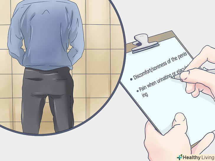 Перевірте пеніс, мошонку, сідниці і стегна на наявність наступних симптомів:- Виділення-щільні по консистенції і мають білий, жовтий або зеленуватий колір