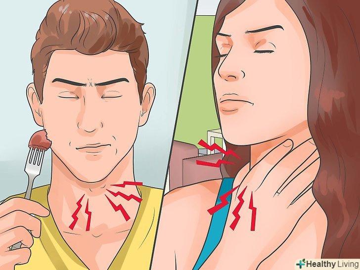 Зверніть увагу на утруднення при ковтанні.гонококовий фарингіт або гонорея рота призводить до болю в горлі, дискомфорту при ковтанні, почервоніння горла і білястим/жовтим виділенням. Ці симптоми однакові і у чоловіків, і у жінок. Люди з гонореєю ротової порожнини зазвичай не заразні, але все-таки зараження можливо при прямому контакті з задньою частиною рота. При поцілунках це захворювання, як правило, не передається, але при контакті різних предметів або частин тіла з глоткою, зараження гонореєю можливо.[12]- Більшість людей з гонококовим фарингітом плутають свою хворобу зі звичайною застудою або болем в горлі. Захворювання виявляється тільки після відвідування лікаря.