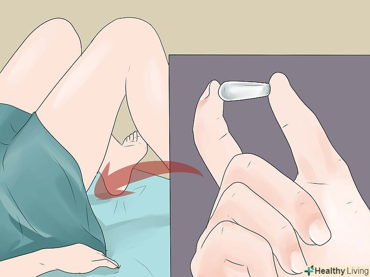 За допомогою пальця або спеціального аплікатора введіть свічку з борною кислотою якомога глибше в піхву (наскільки це комфортно).- Ніколи не вводьте в піхву відразу більше 600 мг борної кислоти, якщо тільки це не рекомендовано лікарем.[2]