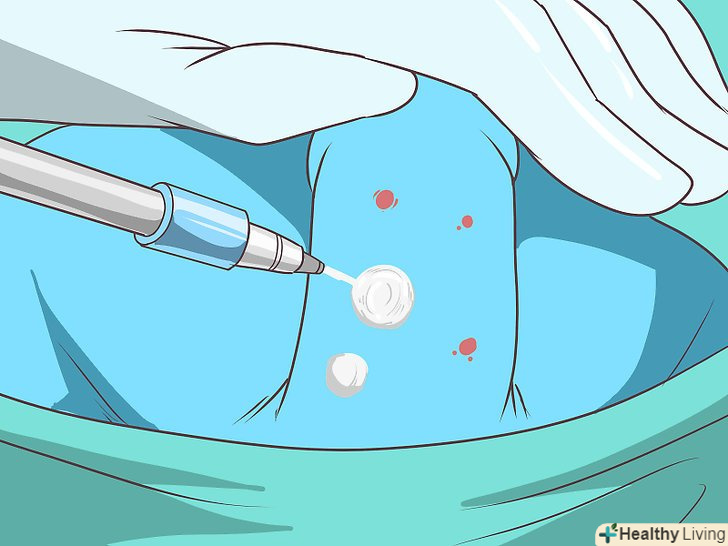 Не чешіть і не тріть пухирі, які можуть утворитися після кріотерапії.після кріотерапії на постраждалій шкірі нерідко утворюються пухирі. Дуже важливо залишити їх у спокої, не чесати і не намагатися їх проколоти. Вони пройдуть самі собою через кілька днів.[14]- У рідкісних випадках пухирі або хірургічні надрізи можуть запалитися. Зверніться до лікаря, якщо через 24-48 годин почервоніння або набряк посиляться, або якщо ви помітите гній або інші виділення.
