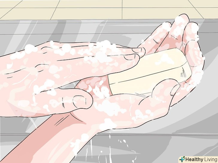 Мийте рукиДо і після обробки бородавок зовнішнім засобом.вимийте руки гарячою водою з милом протягом 20 секунд, після чого сполосніть їх і ретельно витріть. Переконайтеся в тому, що руки абсолютно сухі, перш ніж братися за мазь або гель і обробляти бородавки. Також обов'язково вимийте руки після цієї процедури.[3]- Препарати проти генітальних бородавок здатні викликати роздратування шкіри, тому дуже важливо змивати з рук будь-які їх залишкові сліди. Більш того, якщо ви будете торкатися до інших поверхонь після бородавок, то можете поширити інфекцію.