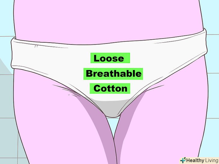 Носіть дихаючу білизну з бавовни.після обробки бородавок маззю або гелем надягайте вільне дихаюче білизна з бавовни. Вам не обов'язково накладати зверху пов'язку, але якщо уражене місце сильно треться об навколишню шкіру або білизну, то з пов'язкою вам буде комфортніше. Якщо ви вирішили перев'язати це місце, користуйтеся тільки марлевим бинтом і не застосовуйте водостійкий пластир.[8]- Коли використовуєте пов'язки, міняйте їх мінімум двічі на день або після купання.