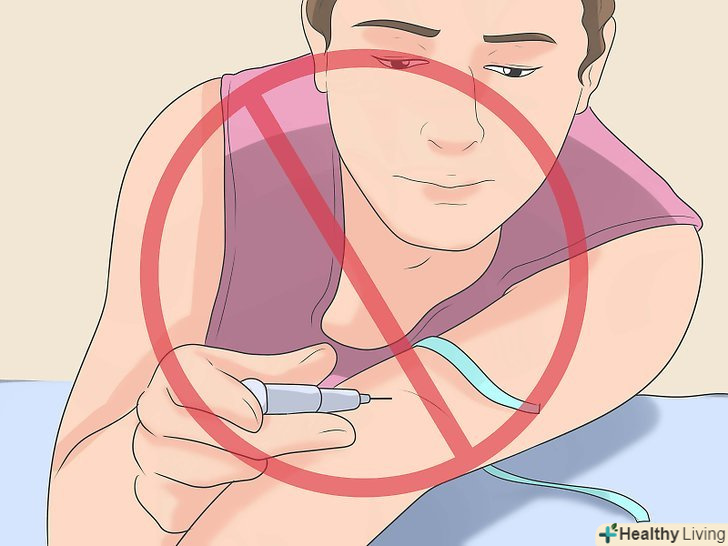 Використовуйте стерильні голки та обладнання.перш ніж ввести будь-яку речовину, переконайтеся, що голка стерильна і ніким не використовувалася. Не користуйтеся ватяними дисками, ємностями з водою або іншим обладнанням для прийому наркотиків разом з кимось. Стерильні голки продаються в аптеках і лунають безкоштовно в рамках деяких програм.- Зазвичай при продажу або заміні голок ніхто не питає, навіщо вони потрібні людині.