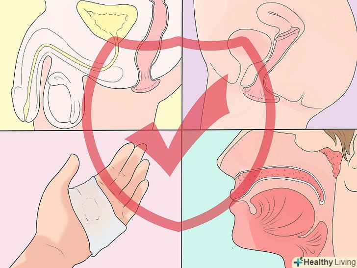 Практикуйте безпечний оральний секс.ризик зараження високий, якщо ви берете в рот пеніс ВІЛ-позитивної людини. У рідкісних випадках можна заразитися ВІЛ від людини, яка торкається ротом до вашого пеніса або піхви або робить кунілінгус.[8] щоб знизити цей ризик і уникнути зараження іншими інфекціями:- Якщо в сексуальному контакті бере участь пеніс,надягайте на нього презерватив. Найефективнішими є латексні презервативи. На другому місці-поліуретанові. Презервативи з натуральних матеріалів не захищають від ВІЛ.[9] якщо вам не подобається смак латексу, використовуйте презервативи з іншими смаками.