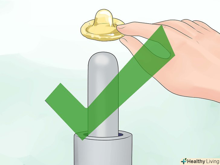 Зберігайте і використовуйте презерватив правильним чином. Прочитайте статті про те, як користуватися чоловічим і жіночим презервативом. Не забудьте стиснути кінчик чоловічого презерватива перед тим, як надіти його. Намагайтеся максимально швидко стиснути підставу, коли будете знімати його. Перед статевим актом переконайтеся, що презервативом можна користуватися:[15]- Не використовуйте мастила на масляній основі з латексними або поліізопреновими презервативами, оскільки масло руйнує ці матеріали;