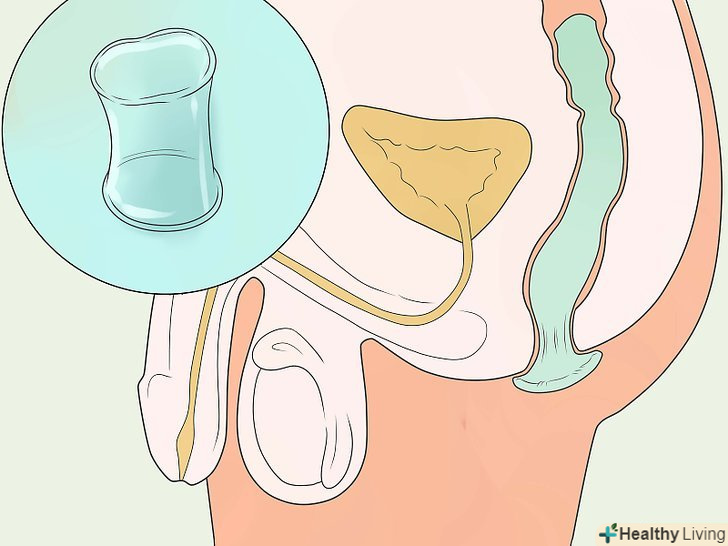 Практикуйте анальний секс з великою обережністю.ректальні тканини легко рвуться і травмуються під час сексуального контакту. З цієї причини для людини, що вводить пеніс, ризик зараження високий, а для людини, що приймає пеніс, — дуже високий.[13] розгляньте інші варіанти сексуальних контактів, які були описані вище. Якщо вирішите зайнятися анальним сексом, використовуйте презервативи і велика кількість мастила на водній основі.- Жіночі презервативи,ймовірно, можуть бути ефективні при анальному сексі, проте це питання не вивчалося досконально. Деякі організації рекомендують знімати внутрішнє кільце, інші ж наполягають на тому, що робити цього не потрібно.[14]